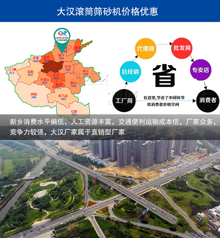 3、新鄉(xiāng)地區(qū)消費(fèi)水平偏低,針對購買用戶群體多為周邊城市,從消費(fèi)者出發(fā),我們廠家制定價(jià)格一般偏低,另外大漢廠家屬于直銷型廠家,無中間商,滾筒篩沙機(jī)價(jià)格更便宜;