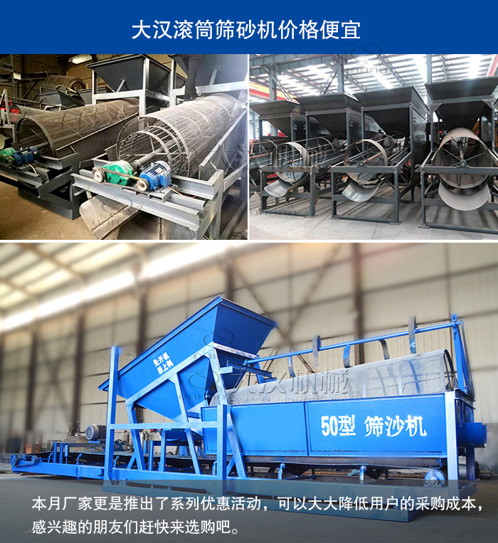 以上是對“滾筒篩沙機(jī)多少錢”的介紹,大漢滾筒篩沙機(jī)價(jià)格便宜,另外,本月廠家更是推出了系列優(yōu)惠活動(dòng),可以大大降低用戶的采購成本,感興趣的朋友們趕快來選購吧。