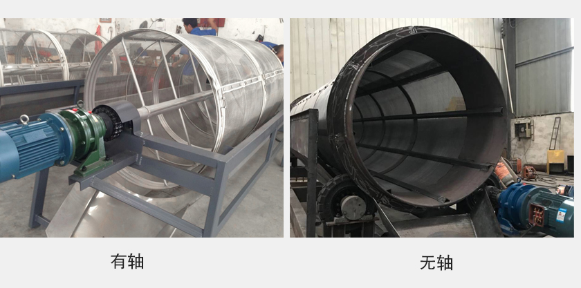 還可以在滾筒篩的頂端安裝一根帶有很多小孔的不銹鋼鋼管,用水流的沖擊力沖掉滯留在篩網上的雜質。