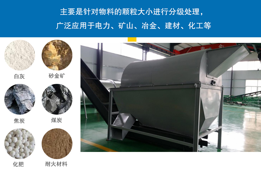 大型滾筒篩主要是針對物料的顆粒大小進行分級處理,廣泛應用于電力、礦山、冶金、建材、化工等行業,常用于耐火材料、煤炭、化肥、砂場石塊的分級,還可以處理焦炭、白灰、砂金礦等粘濕性物料。