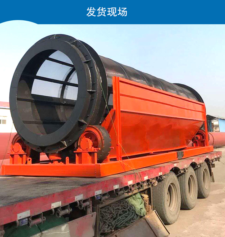 1、河沙含水量多,使用普通振動篩會造成物料粘在篩網上,而滾筒篩利用翻轉運送原理,在篩分過程中不會出現堵網現象。