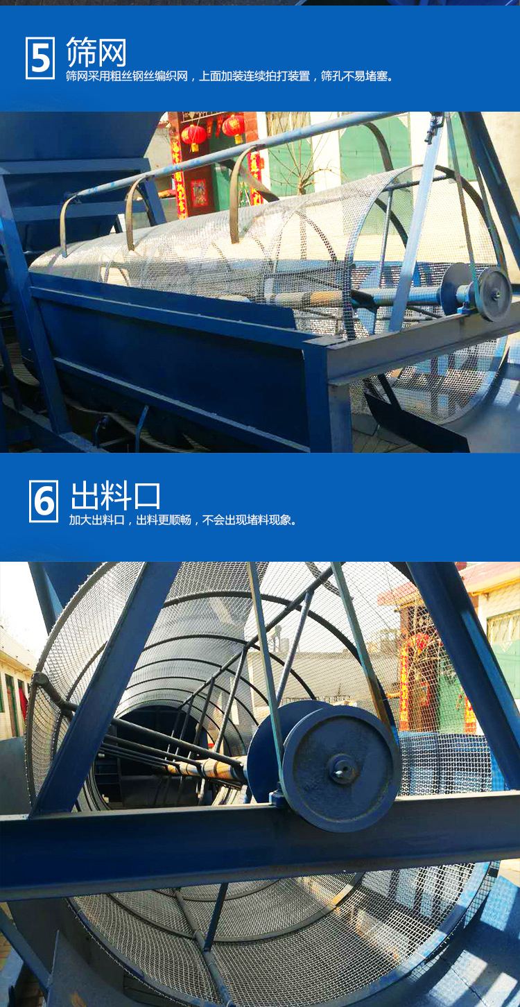 1、采用了滾動輸送的原理,摩擦系數小、使用壽命長、維護成本低、且篩孔不易堵塞;